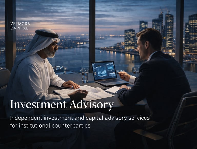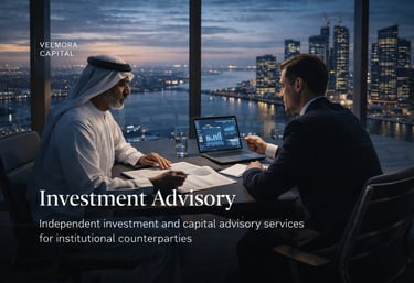 Velmora Capital provides independent investment and capital advisory services to Professional Clients and Eligible Counterparties seeking strategic insight, transaction support, and capital structuring guidance. Advisory engagements are tailored to specific objectives and are grounded in disciplined analysis and informed judgment.